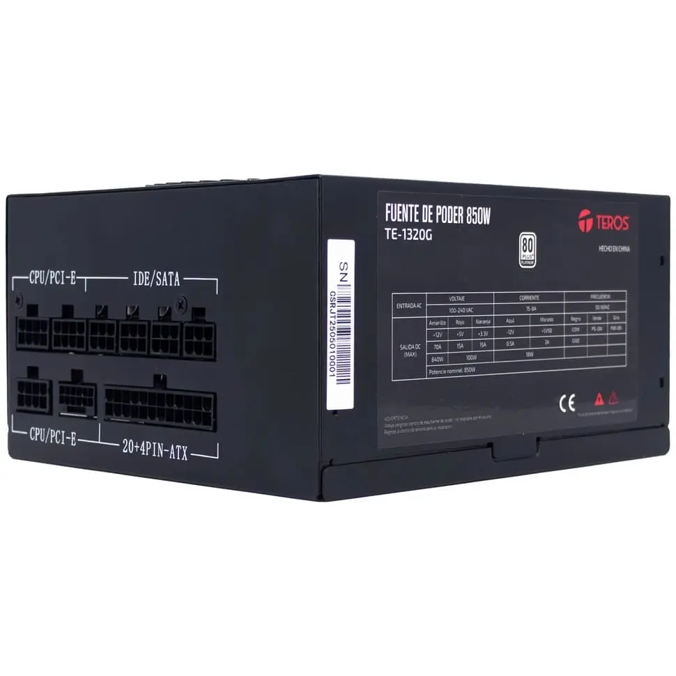 Especificaciones de Fuente Teros TE-1320G 850W 80 Plus Platinum Modular